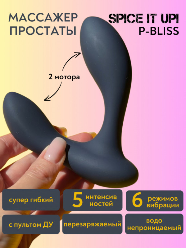 Восхитительная новинка в мире мужских девайсов - супергибкий, эргономичный, анатомичный массажер простаты "Spice It Up P-Bliss" с двумя моторами и мегамощной вибрацией!