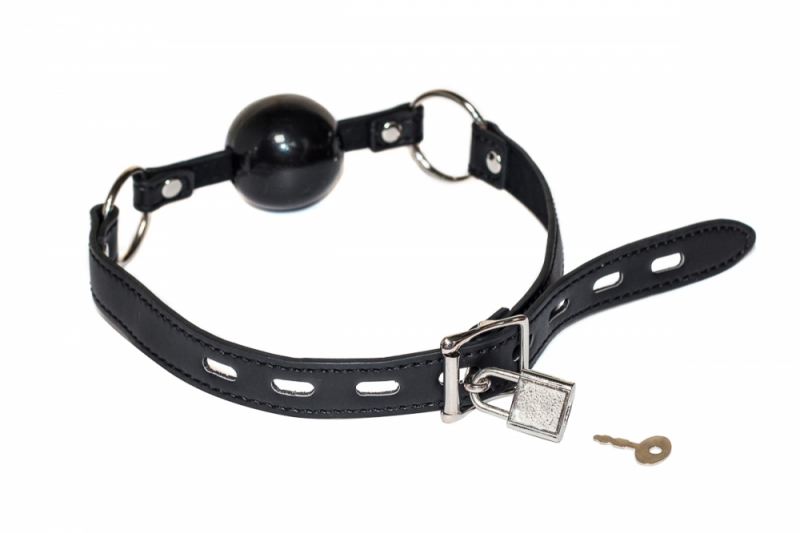 Выполнен кляп из ПВХ в виде шарика. Ремешок из экокожи регулируемый и фиксируется навесным металлическим замком!
