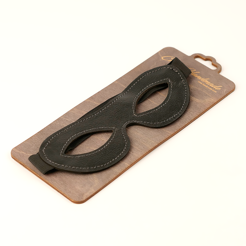 Выполнена маска из натуральной кожи. Эластичная плотная резинка отлично фиксирует на затылке аксессуар