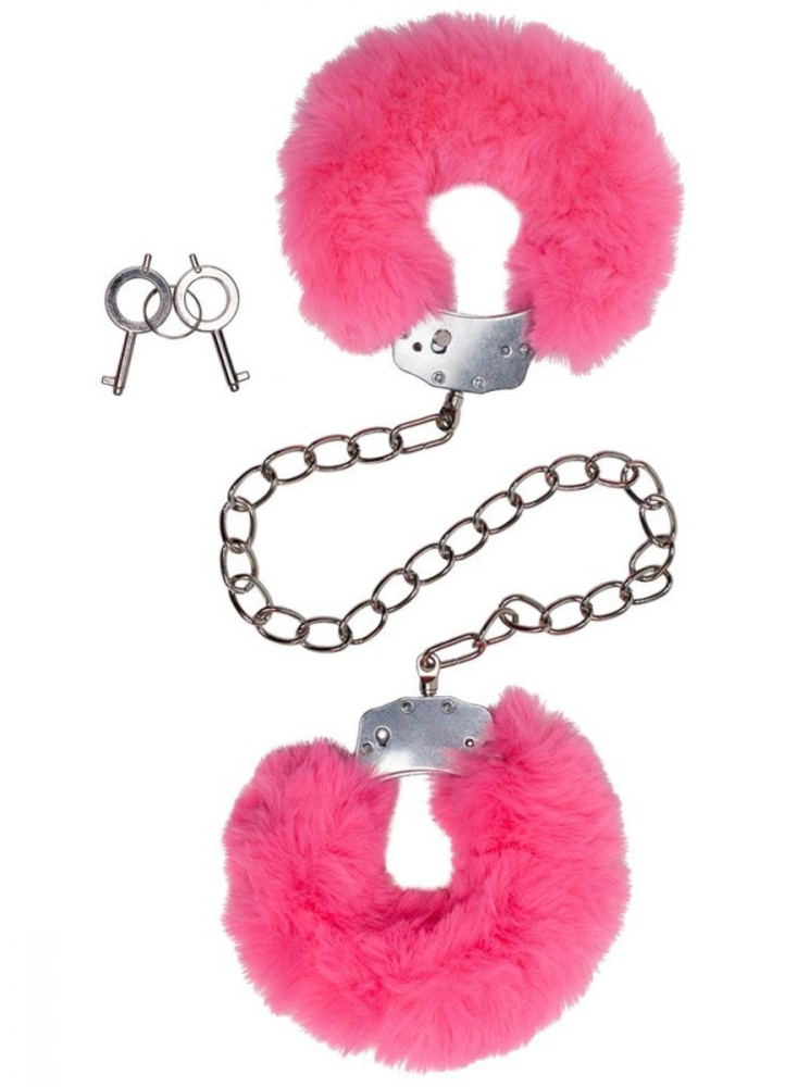 Металлические оковы обшиты супер объемным экомехом розового цвета! Мех съемный, что позволяет экспериментировать с ощущениями!
