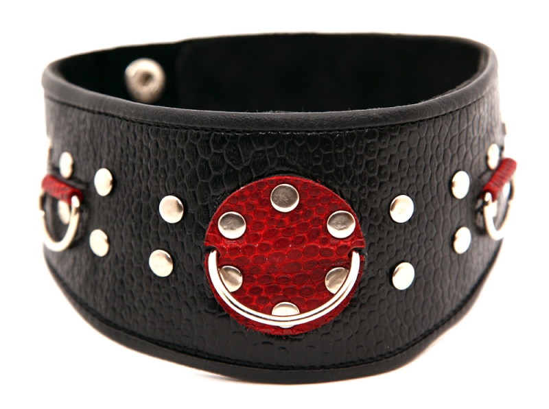 натуральная кожа, черно-красный, на заклепках