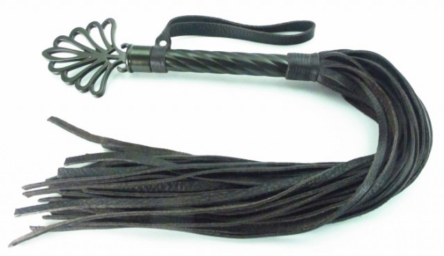 Выполнена плеть из потрясающей натуральной кожи в коричневом цвете. 40 мягких хвостов обеспечат незабываемые разогревающие удары! А, удобная металлическая рукоять-корона со специальной кожаной петлей - позволит, не только контролировать силу удара, но и доставит Верхнему истинное наслаждение держать ее в руках!