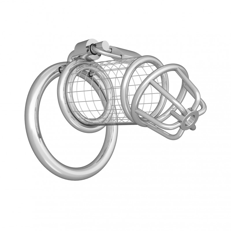 Выпол­нен пояс вер­но­сти из хирургической стали - абсо­лютно гипо­ал­лерген­ного мате­ри­ала. Ствол закрыт металлической сеткой, на головке решетка, кото­рая создает вен­ти­ляцию и создана для комфорт­ного моче­испус­ка­ния. Эрекци­он­ное метал­ли­че­ское кольцо с надеж­ным зам­ком удержи­вает кон­струкцию на теле мужчины!