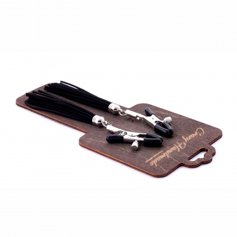 Зажимы-прищепки на соски "Crazy Handmade" с черными кисточками из замши