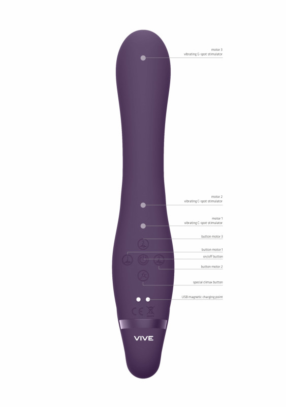 Девайс имеет 3 мощных мотора, 10 разнообразных режимов вибрации ствола, 10 режимов вибрации вагинального отростка и 10 режимов вибрации клиторального отростка, что позволяет экспериментировать с ощущениями! Управлять своим наслаждением легко и просто, при помощи интуитивно понятного интерфейса. Все моторы независимы друг от друга, что идеально для тщательного выбора своего режима каждому из партнеров