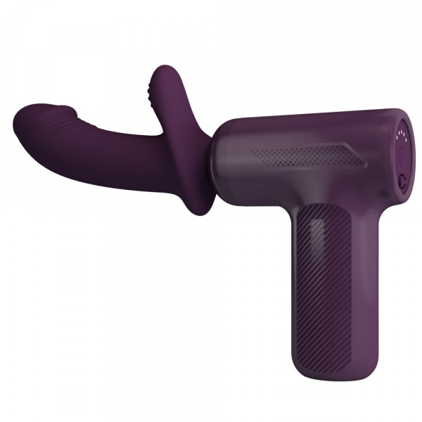 Форма вибратора максимально анатомична и не доставляет дискомфортных ощущений во время использования. Реалистичная головка с особенным загибом предназначена для поиска и массажа G-зоны, клиторальный отросток с внутренней поверхностью из россыпи шипиков интенсивно ласкает снаружи. Выполнен девайс в виде пистолета, который идеально ложится в руке и позволяет использовать игрушку с максимальным комфортом